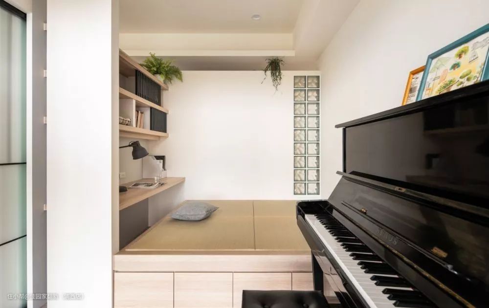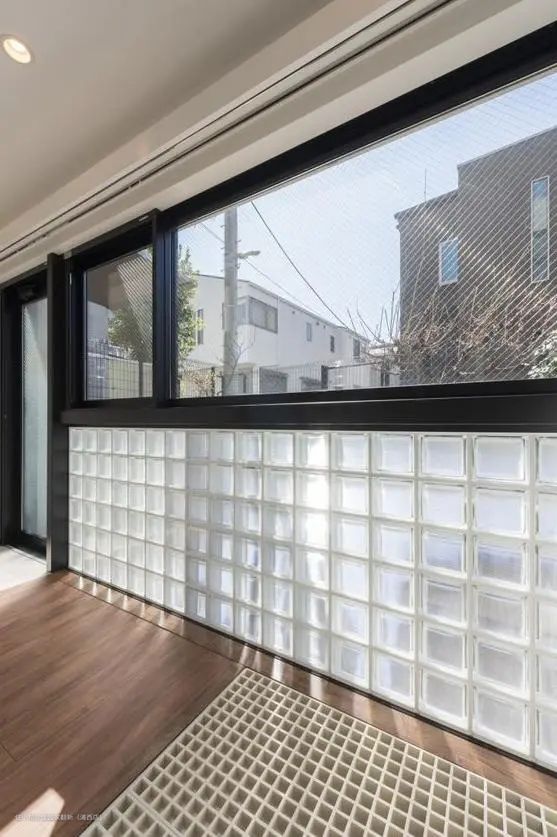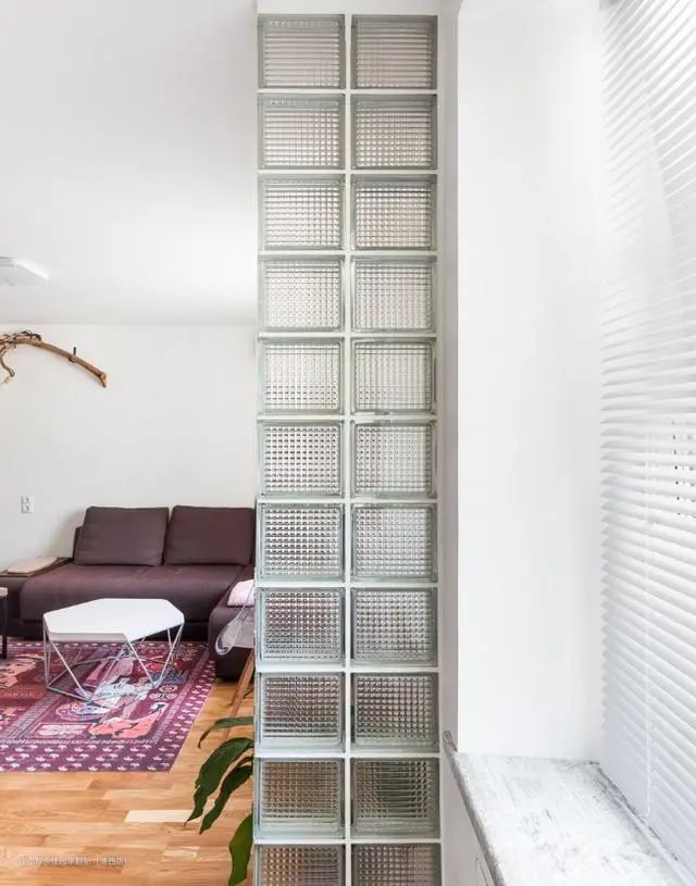 或者用于阳台和客厅之间的隔断,黑框玻璃砖,增加了一丝工业风。