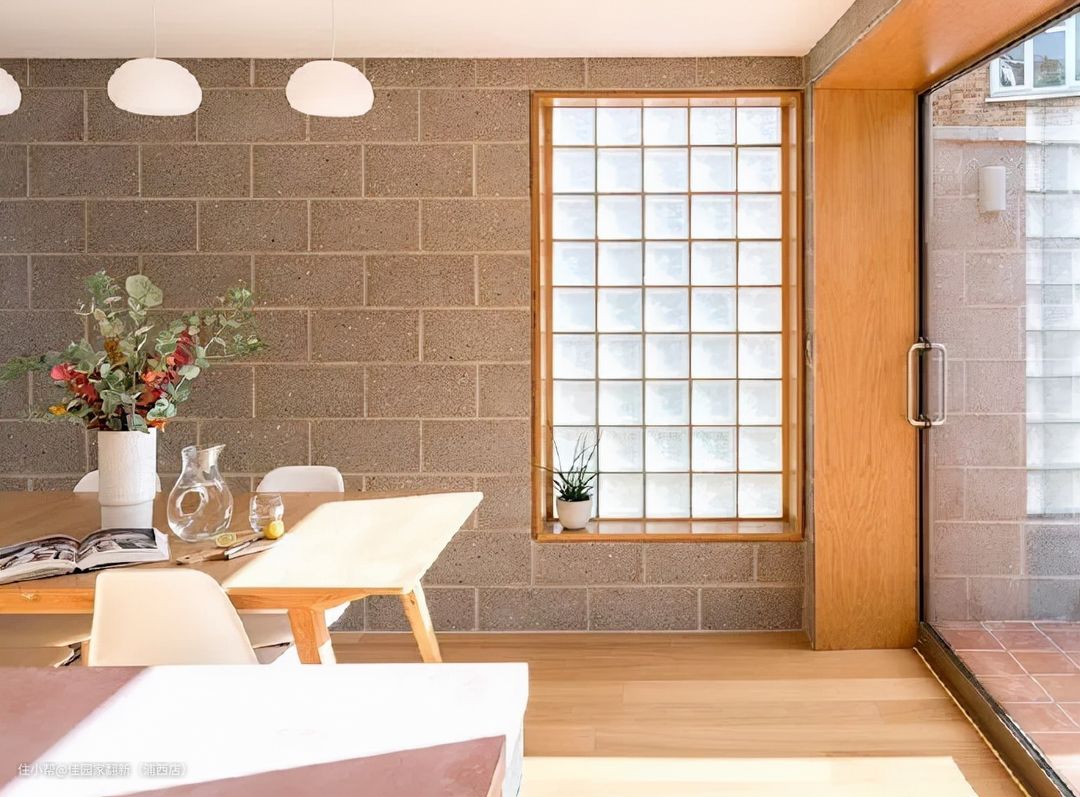 如果有个户外小花园,那么也可以用玻璃砖隔断,户外风景与阳光一起映入家中,营造出美好的艺术氛围感。
