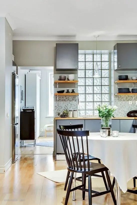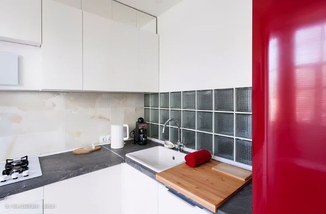 小面积的玻璃砖也能用在厨房,保持透光。