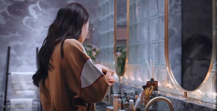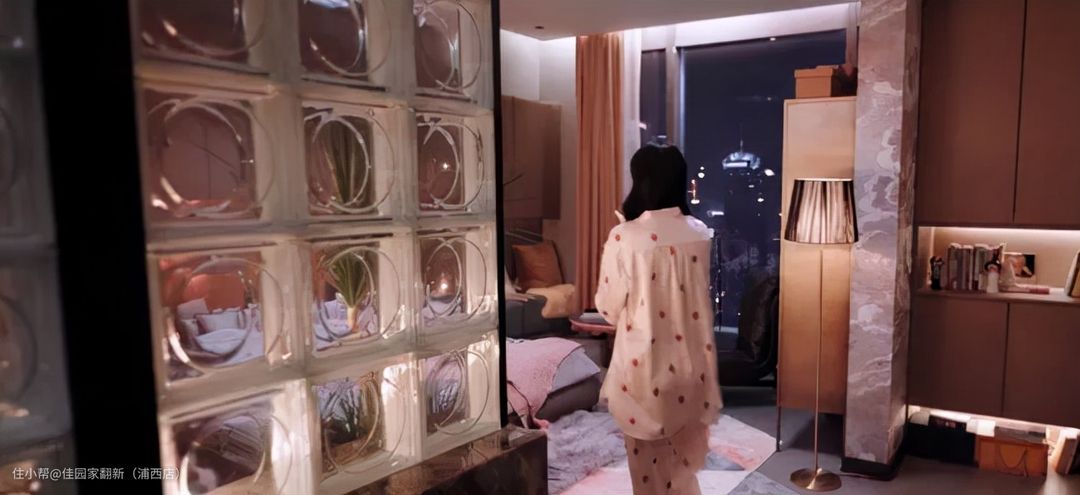 电视剧《你是我的荣耀》中,大明星乔晶晶的滨江豪宅也用了玻璃砖做隔断。用在了卧室空间和洗漱台之间。