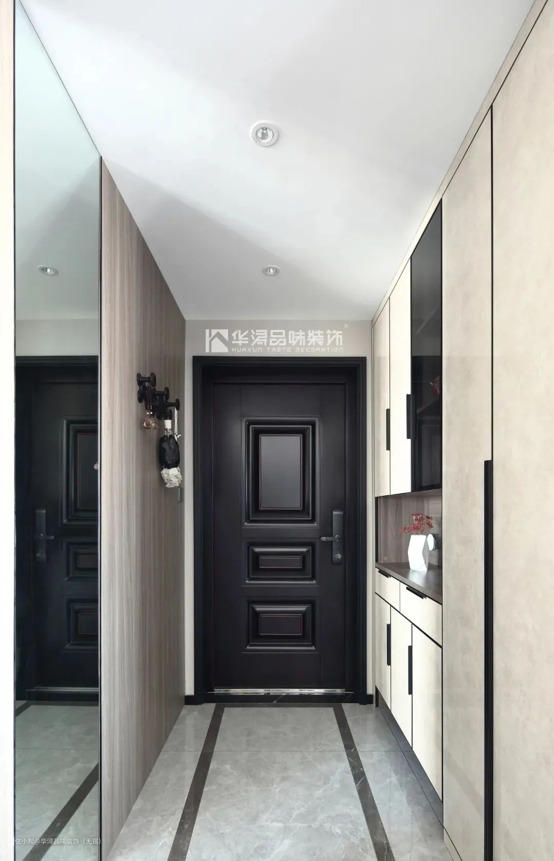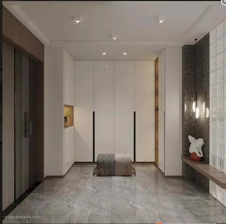 玄关的整齐有效,是最关键的。很多人不要陷入一种误区,认为“花里胡哨的玄关能营造豪华感”。再考虑实用性的时候,还要考虑美观。鞋柜,衣帽架这些东西最好都是定制的,而且隐蔽性要比较好。这样才能和屋内的其他装修达到统一的效果。