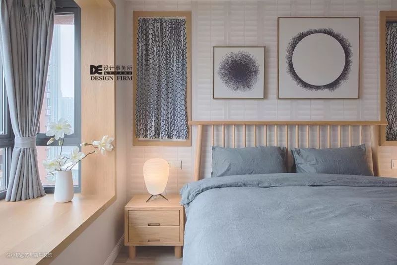 在做定制柜的时候,在飘窗台上加装木质窗台面,让飘窗兼备收纳功能,这是一体性比较强的实用设计。