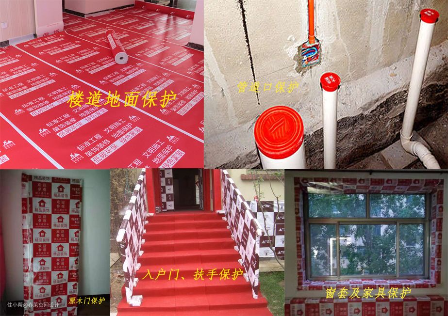 进行电梯、走道墙面、地面等进行保护。房子内部需要把地漏、管道口、地暖分水器或者不拆除的家具,地板瓷砖等保护好在进行施工。