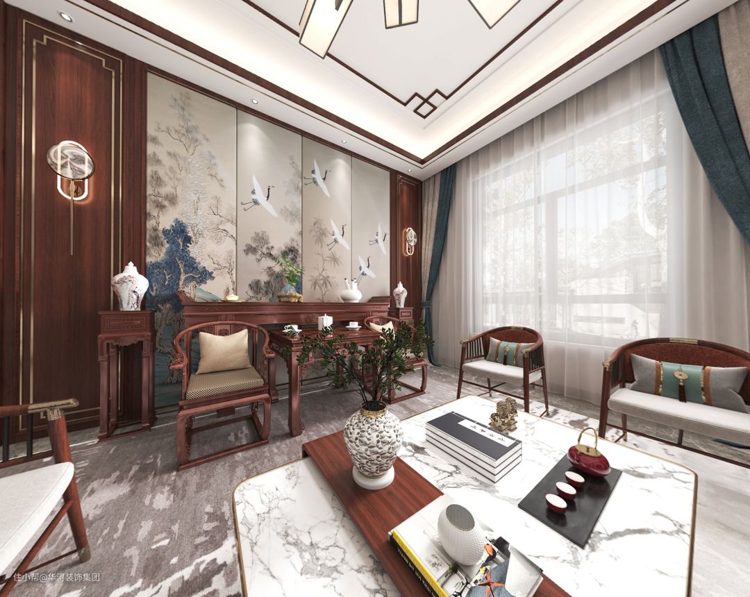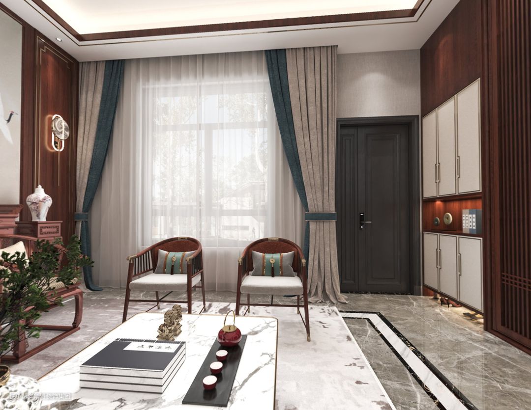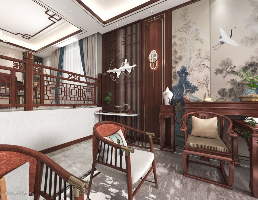 中式风格的客厅设计,这是一个错层的客厅,所以客厅主要是设计大气,大气一定是中式风格,这样的风格既传承了中华的美德与灵魂,所以色调也中国红的实木装饰,尤其家具采用纯实木,案几大气时尚,背景墙采用对称的手法,传统的国画装饰,这样的空间既有传统的美感也有居住的温馨。