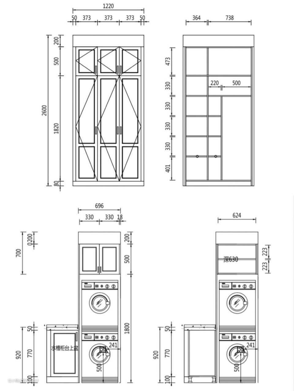这个空间一定要注意晾晒杆的问题,晾晒杆尺寸不宜过长 ,避免影响柜门的开合。