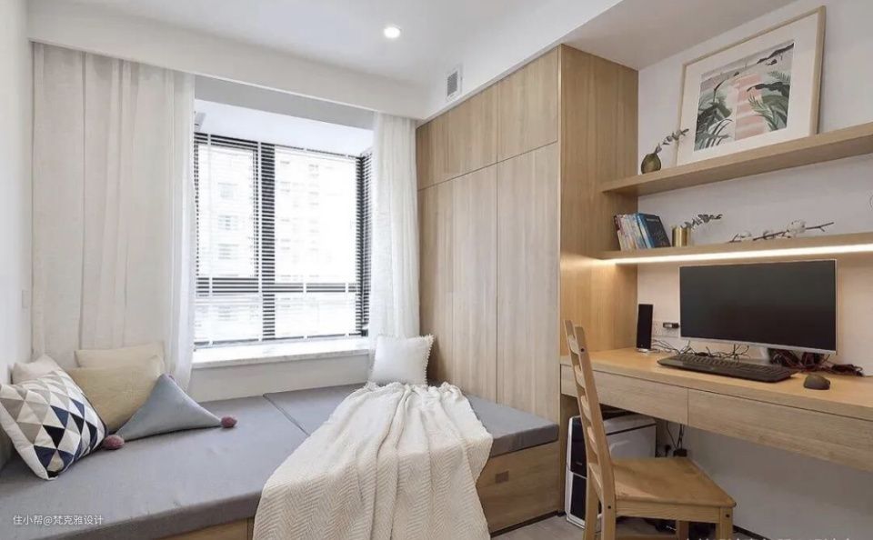 3、飘窗榻榻米一体 ,延伸空间视觉感,减少空间压抑感。