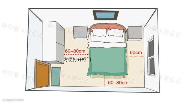 ①床体和衣柜之间要留60-80cm上下的通道距离。