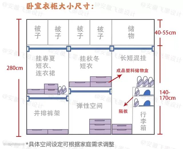 ③内部分区设计,长挂衣区高度建议在1.4-1.7m。