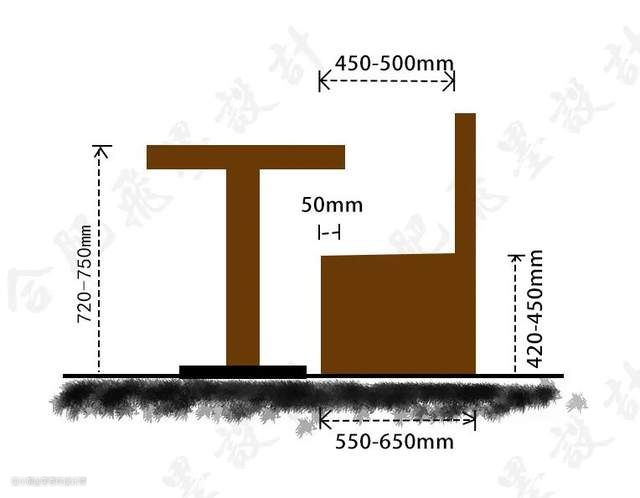 ①卡座的深度建议在550-650mm之间,座面净深在450-550mm上下。