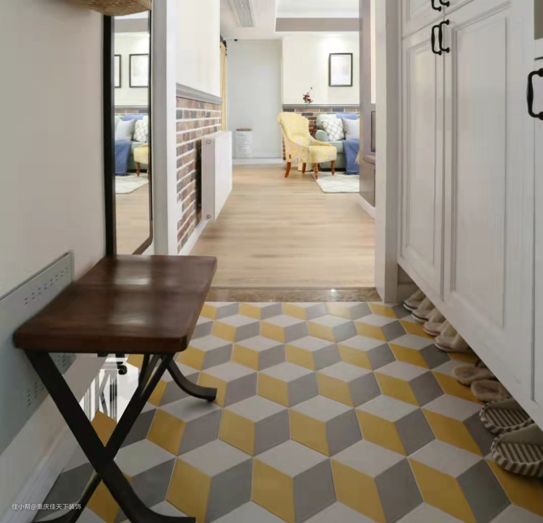 以房门为界限,门槛石颜色可以选择能看到门洞的一边相同,远看就是地面的延伸部分,不会特别突兀。把门关起来时,也不会看到明显的界限。