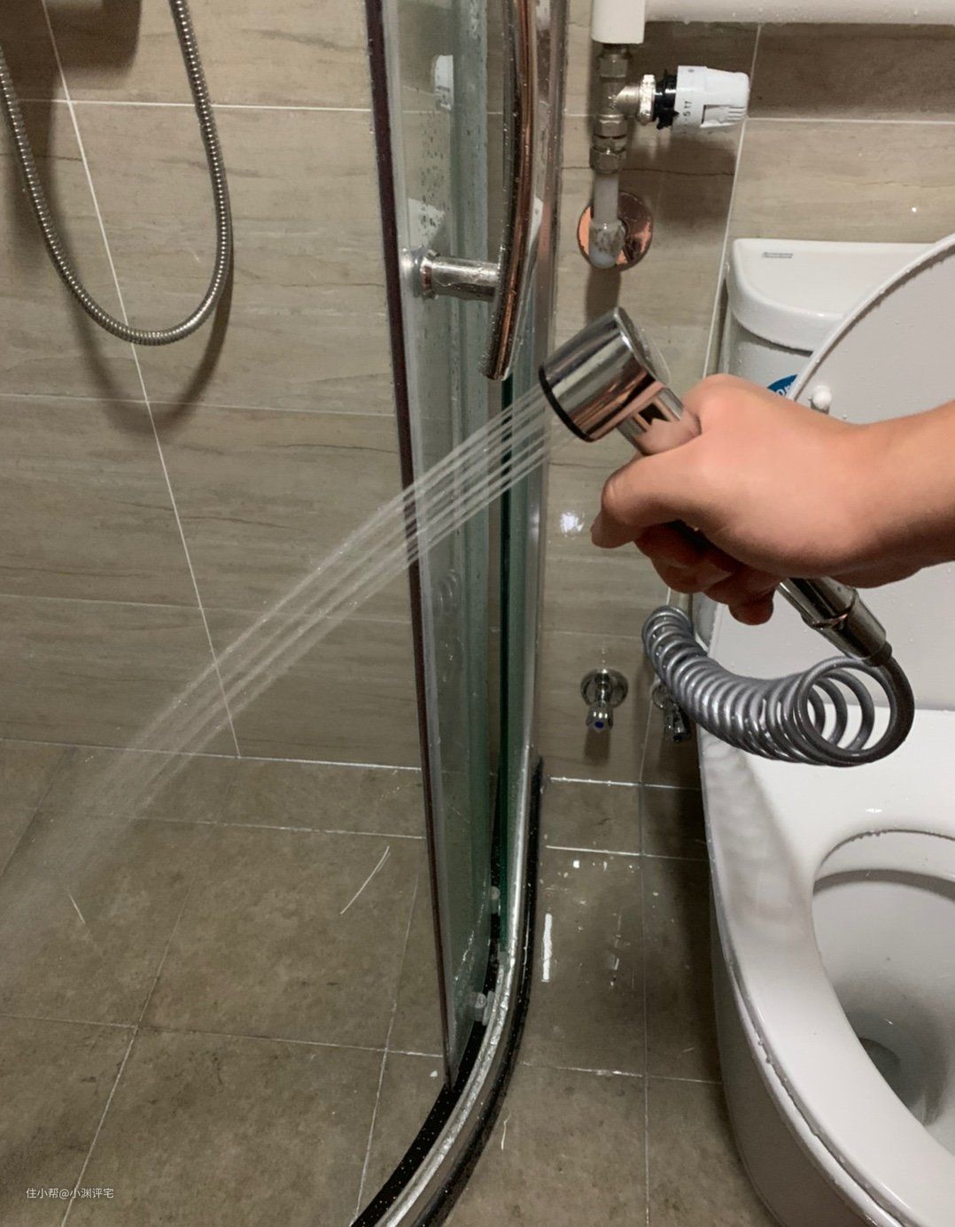 马桶旁边,也可以安装一个这样的喷枪。不用增压,喷枪里的管道很细,所以可以把普通的自来水水压增加到能够清洁的大小。