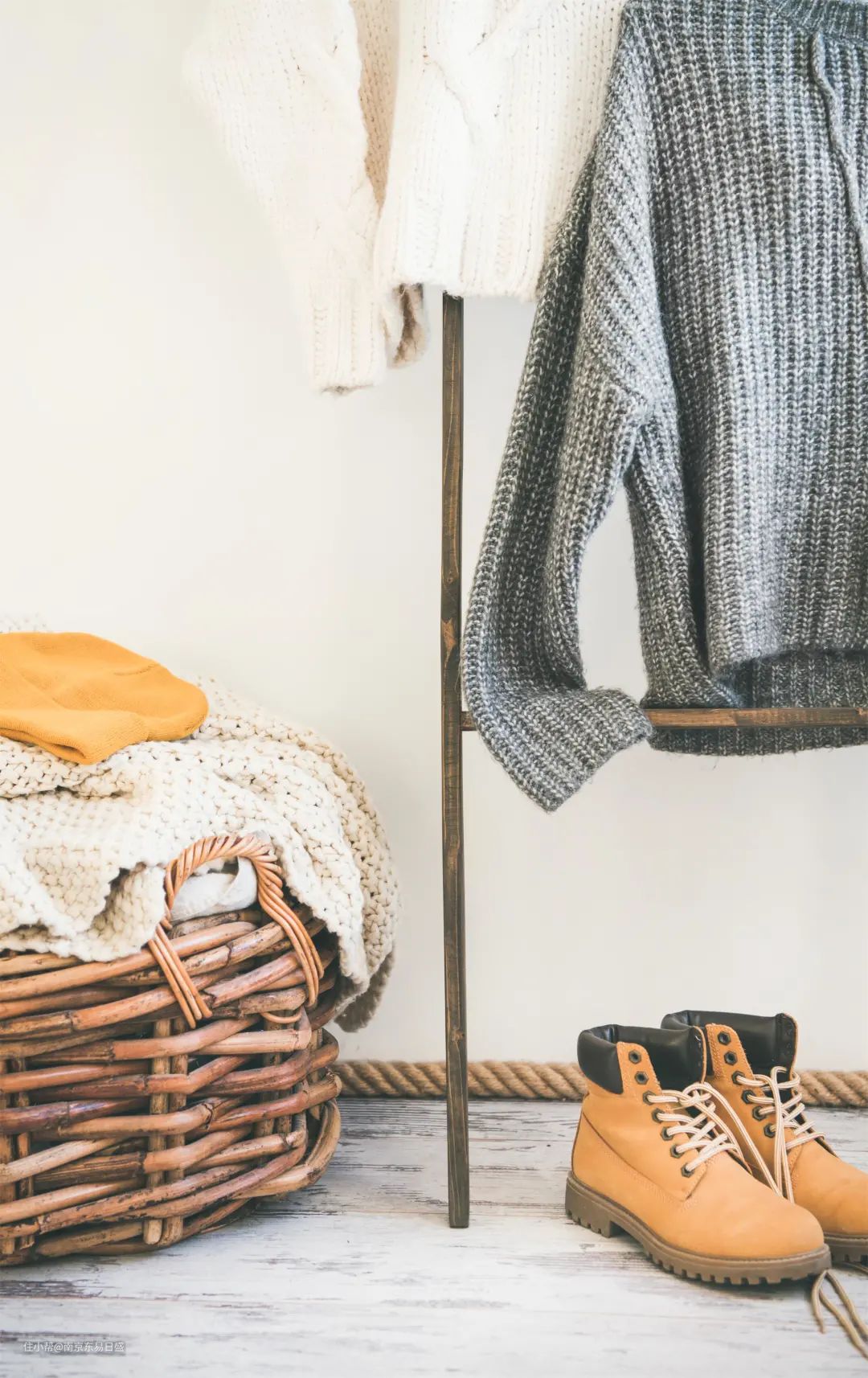 △ 此外,梯子还能带给人非常舒适、惬意、轻松的视觉感受。但要注意的是,搭在上面的衣服一旦多了起来,一样会显得凌乱难看。