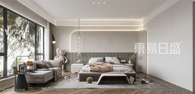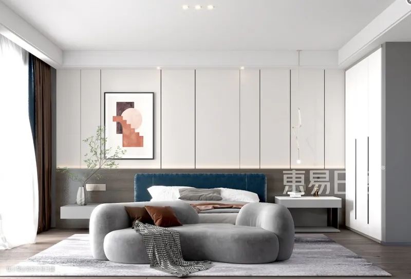 卧室面积大,并且想增加卧室空间功能的话,那就添个沙发吧,睡前衣服的放置地也有了更多可能~