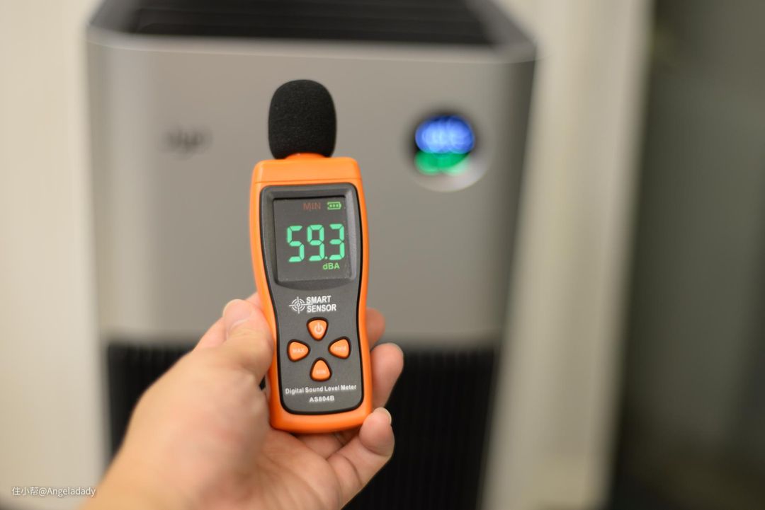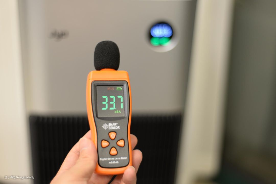 ▲大家都很关心空净工作时的噪音问题,以上两图为我在深夜时做的测试,上图为最大工作效率模式下的声音,达到59分贝,虽然感觉稍微有点吵但是看在净化效果的份上,只要不是睡觉,这个声音还是可以原谅的。下图为睡眠模式下33分贝的噪音,基本可以忽略不计,完全不会有吹风的声音,只有轻轻的机器运作的声响,真的非常轻。晚上休息时,还可以把屏幕亮度关闭,对睡眠根本没有影响,非常棒!