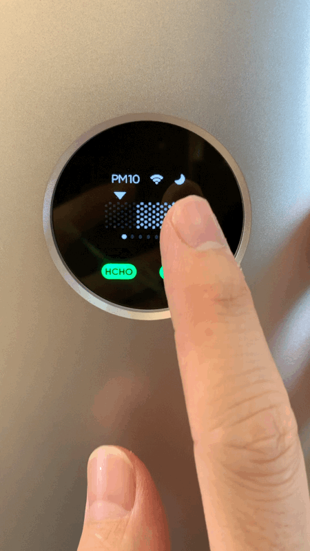 ▲屏幕亮度轻触可调节,特别是对于我这种睡眠很浅的用户来说,绝对是福音,睡眠的时候可以开着Jya空净,而且没有光污染,好评!