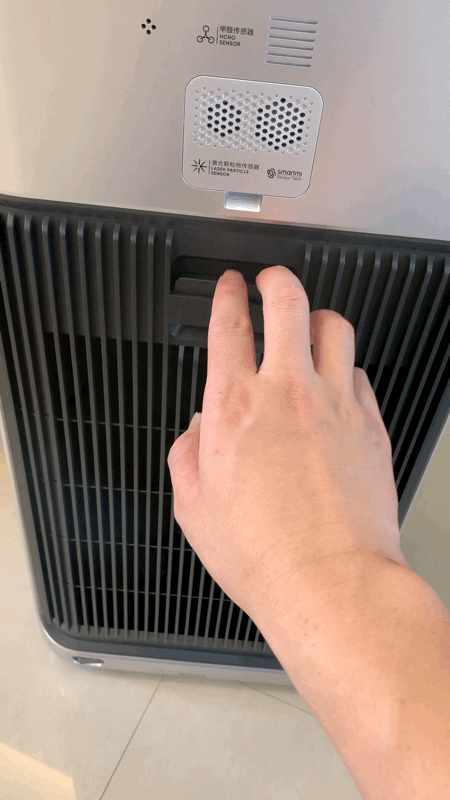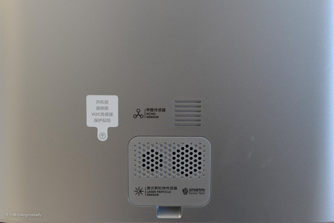 ▲背面小小的一块区域,隐藏了四块传感智能系统:甲醛传感器(采用Dyson同款传感器)、TVOC传感器、PM2.5雾霾传感器以及PM10沙尘/过敏源传感器,自动挡模式可智能识别4种空气污染细微变化,一旦发现任何污染超标,智能高效运行消除隐患。