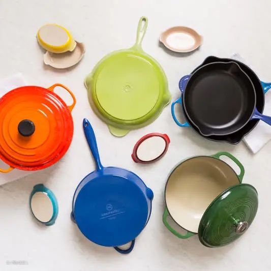 法式厨房流行的一种锅,在铸铁锅表面加入珐琅涂层,各种颜色的加入,确实让厨房的颜值大增。