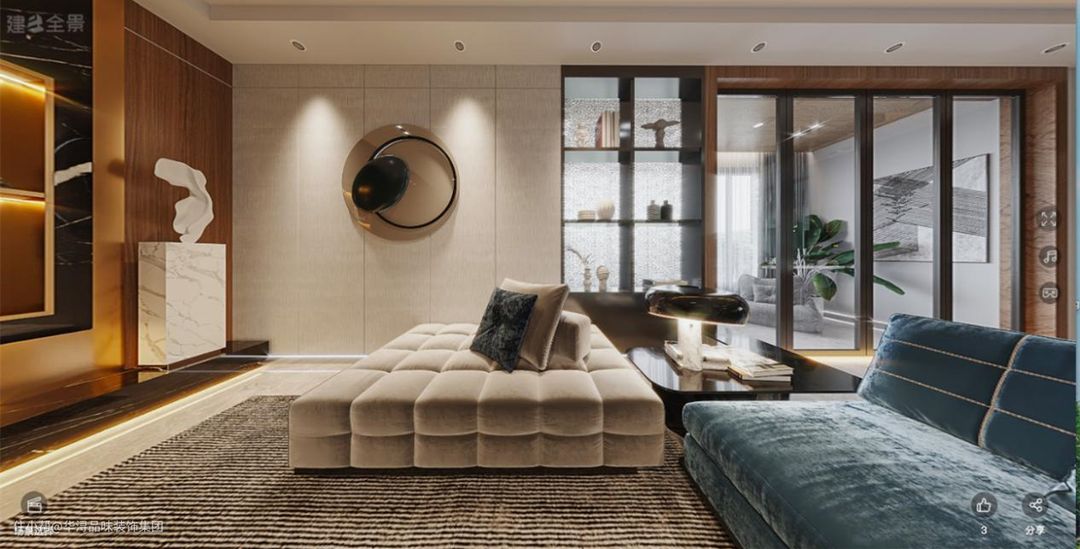 平层住宅的现代轻奢风设计,第一眼就爱上了温馨的客厅