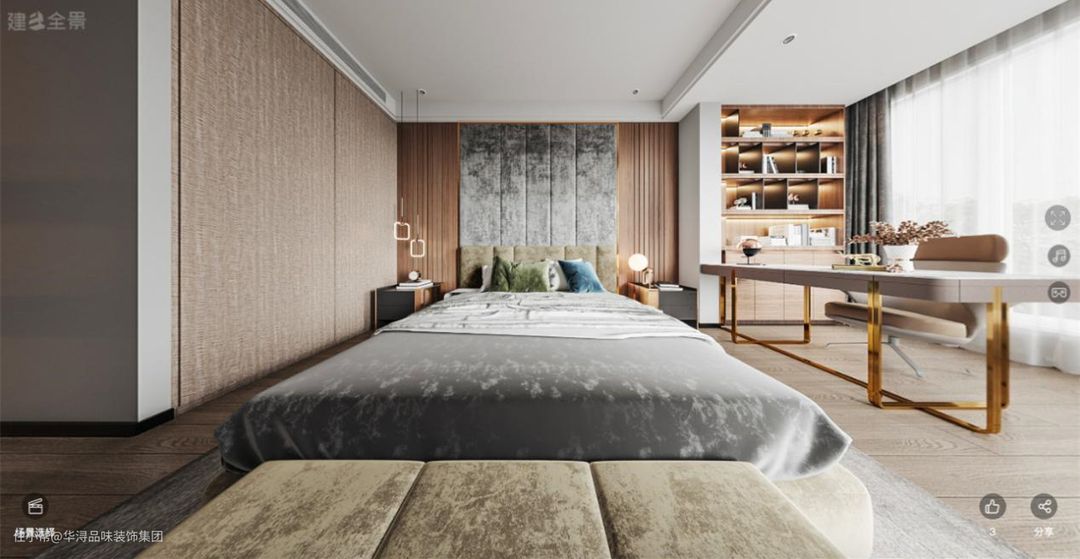 - 业主十分注重文化素养,要求在每一间卧室都设置一组书桌方便随时读书。