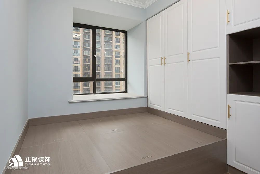 在玄关走廊处做了嵌入式的鞋柜,鞋柜的边角处可以留空一部分,作为换鞋凳和挂衣区来使用,这样可以避免站着换鞋的尴尬。