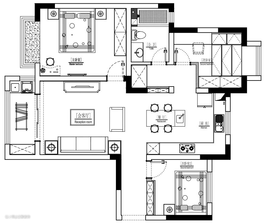 客厅的舒适宽敞加上厨房的浓浓生活气息,调和出的会是与众不同的一顿美餐。