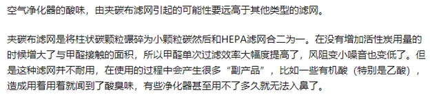 作为以前的小米空气净化器的使用者我可以直接说出我的感受,当滤芯使用的时间久了以后,不更换新的滤芯就会有酸味。关于这个我也是去查了相关的资料。
