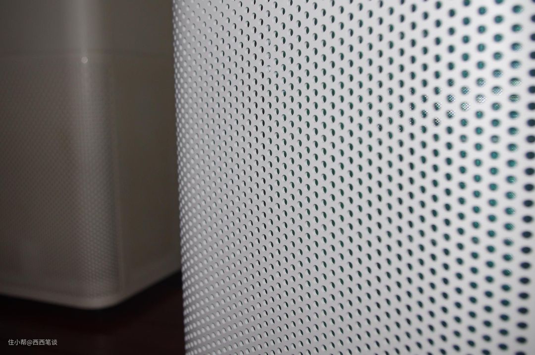 机身跟原来的设计“好像”并没有什么变化,也是许许多多个小洞用来进风的,当年第一代空气净化器刚出来的时候好像还在这方面宣传过,说是有5732 个进气孔。反正我是没有细数过,但是时至今日,最新款的空气净化器上依旧采用这样的设计,我想肯定是有可取之处的。