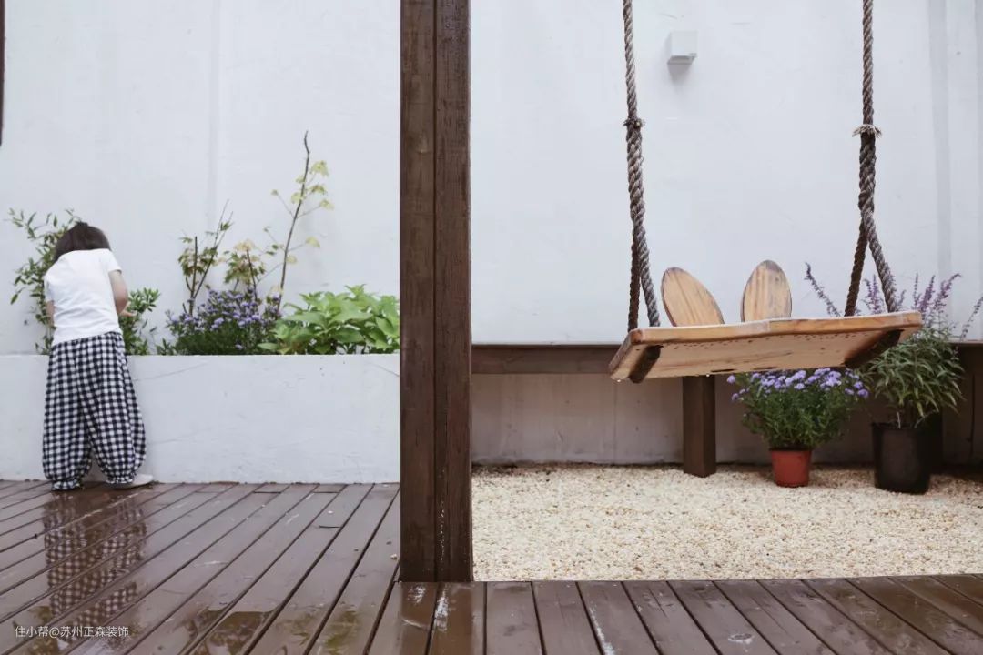 设计师决定加设葡萄架的初衷就是想为小胖桃装个秋千,谁的童年不爱荡秋千呢~
