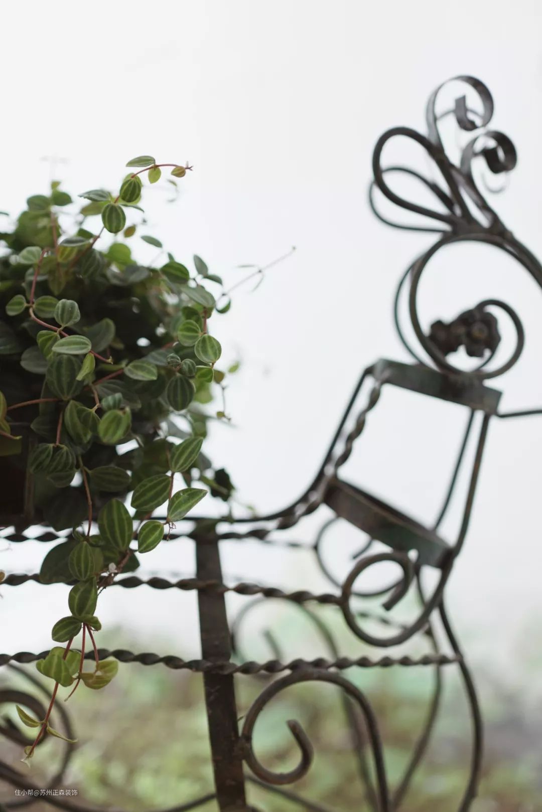 铁艺小鹿造型花架依旧是老物件一枚,一捧钻石翡翠长势喜人。窗外的三角小花圃是小胖桃的包干区,种着各种香草,屋主在做西餐或调mojito的时候,可以直接就地取材。