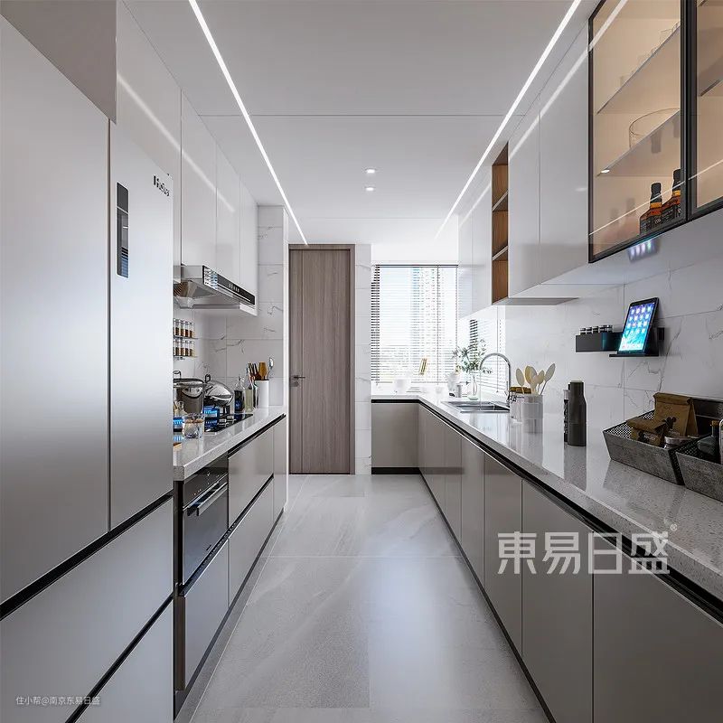 它的特点是空间狭长而独立,烹饪简单,结构单一,好整理,对收纳的需求不大。