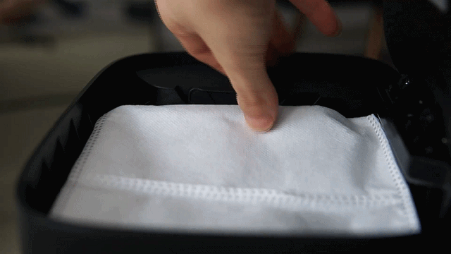 滑片的设计非常巧妙,在集尘座里安装好的时候,尘袋口是打开的,拉动滑片取出的时候就自己合上了。所以装满垃圾后更换尘袋时,人手也不会接触到垃圾,很卫生。
