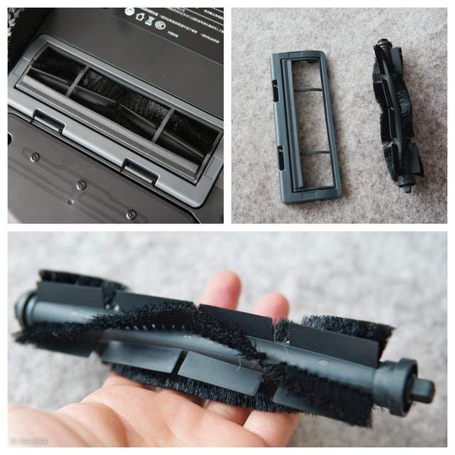 中间的主刷可以拆下清洁,主刷是毛刷和硅胶的组合设计,对于地毯和光滑地面都有比较好的清洁效果,硅胶片中间有留空设计,清扫效率更高。