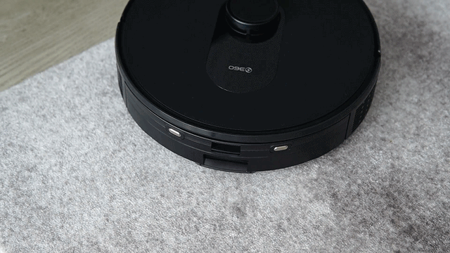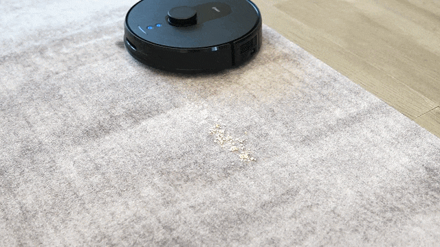 从动图可以看到一样也被清理干净了,值得一提的是机器有地毯增压模式,可以在设置中开启,遇到地毯区域就会自动开启大吸力增压,清洁效果更好。