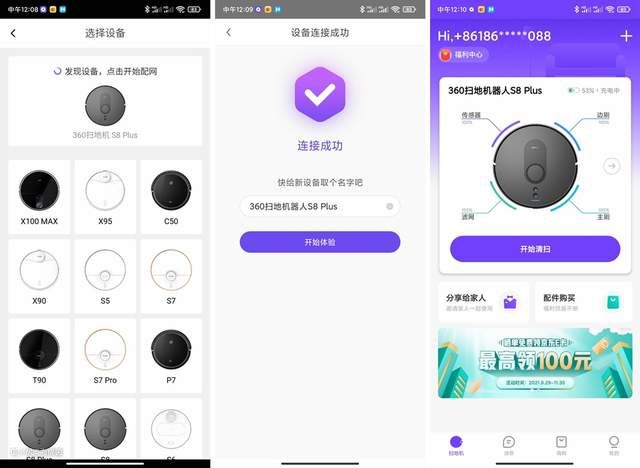 先下载360扫地机APP,初次使用的时候根据提示自动联网,很快就能完成配对。