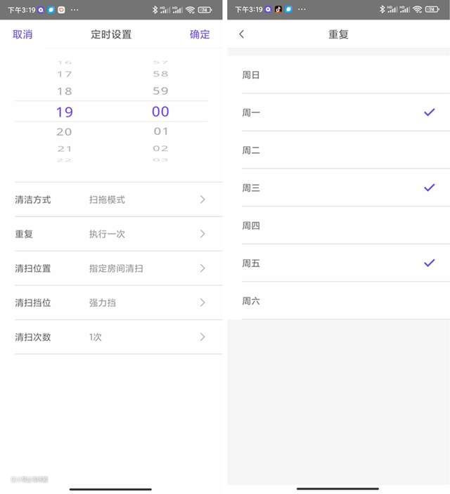 定时清扫方面同样也是做到了精细的程度,不仅可以预约清扫时间,还可以单独设置对特定区域的清扫,比如上午10点可以先来一次全屋清扫,晚上7再对厨房和餐厅做一次单独的清扫,满足个性化需求。另外像一三五扫地,二四六拖地这样的日期预约也是可以轻松实现的。