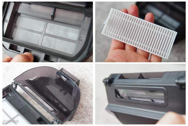上层是滤网和滤芯,吸入口处也有防尘片的设计,可以说尘盒虽然mini,但该有的一样不少: