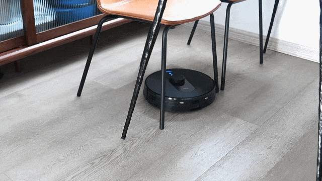 举个例子,在桌椅腿森林的环境下,尤其是这种金属细腿,对于扫地机来说第一次可能会略有磕磕绊绊,需要细心谨慎绕行。