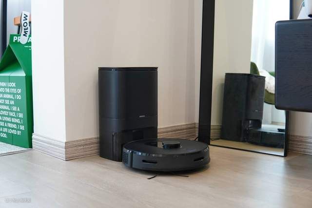 机器与集尘座整体组合后并没有预想中那么占地,集尘盒可以靠墙放置,家里原来放扫地机的地方应该都能放下。