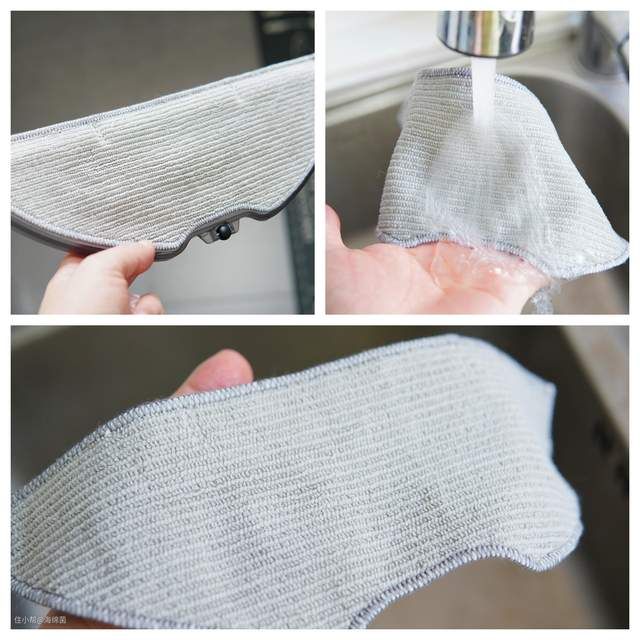 使用前将拖布先安装到拖布支架上,拖布与支架之间依靠魔术贴固定,安装方便: