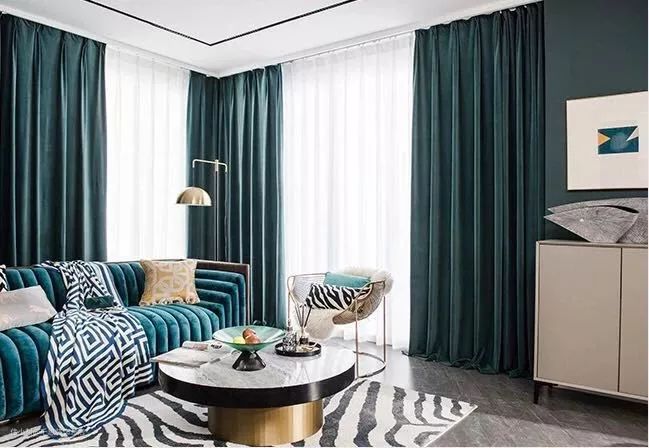 客厅强调足够的自然光线,所以窗帘遮光率则不需要太高,满足隔热、弱化强光的功能即可,一般在40%-60%左右便足够。如果客厅有阳光直晒或西晒,或者需要投影等,可以选择遮光度60%以上的深色窗帘。