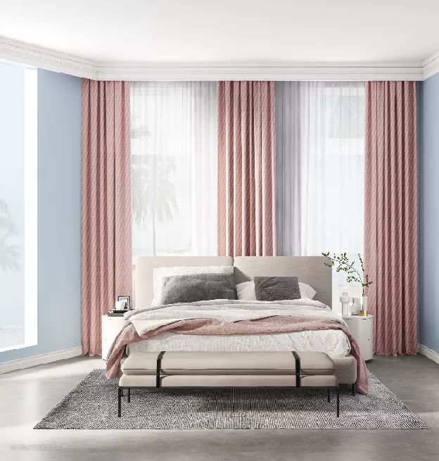 02.卧室对整体私密性的要求较高,可以选择质地较为厚实的绒布布料,能有效的阻挡光线,并起到一定的隔音作用。