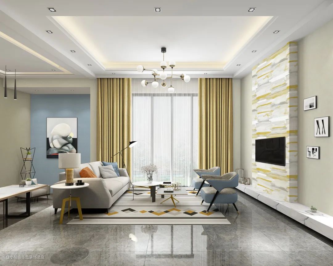 01.客厅对空间的宽敞明亮度要求比较高,同时也会追求一定的格调和质感,建议选择绒布和纱质窗帘的组合。