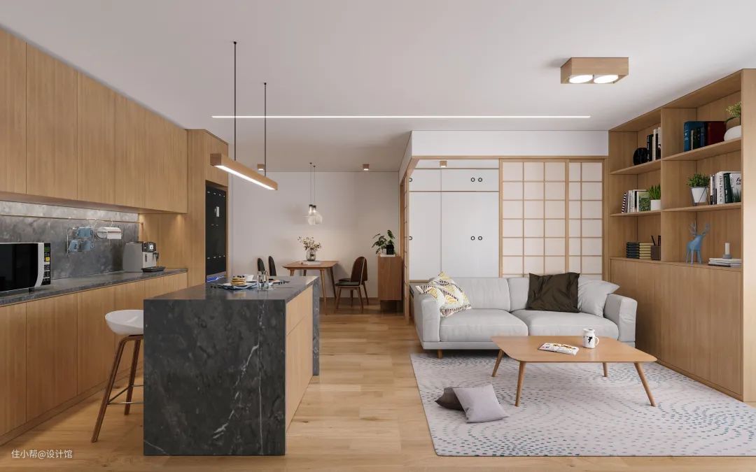 100㎡简约原木风,大白墙+原木质,让空间简约舒适