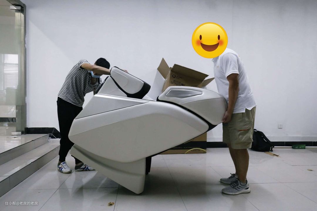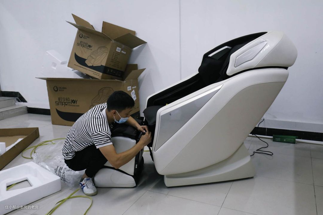 按摩椅别看一体化挺好看,其实运送过来的时候也是分为几个箱子分装,需要安装的。