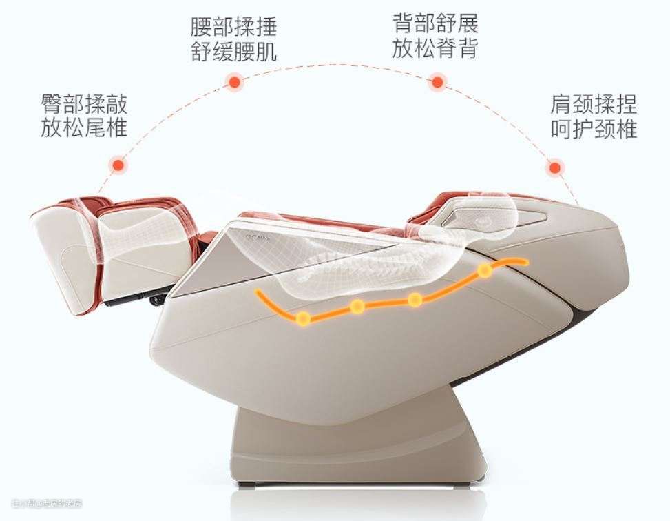3、按摩手法要多样。老式的那种按摩椅只是几个按摩球在背后压来压去,真的不舒服。新购入的按摩椅一定要力度可调节、手法多样化,最好带有多种预定程序,不同部位不同需求一键启动。