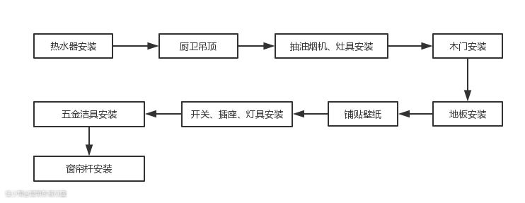 2.热水器、厨房器具、五金材料可在施工环节快结束时开始物色购买。