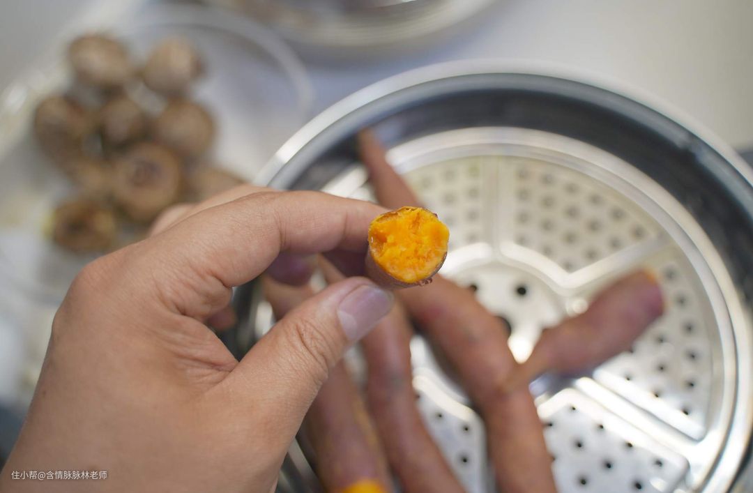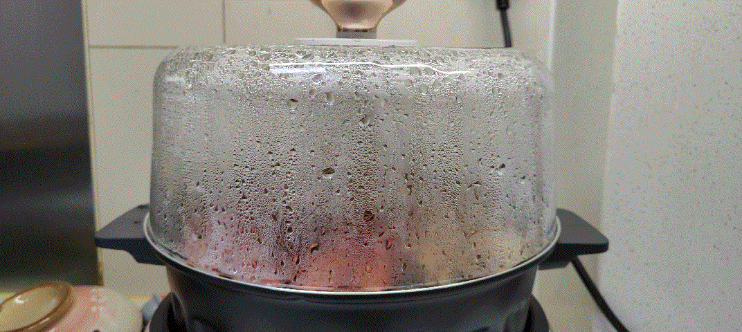 ▲在蒸芋艿和红薯的时候,蒸汽的加热让玻璃锅盖甚至可以在蒸锅的边缘慢慢转动,十分的有意思。