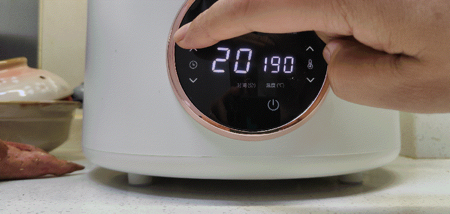 ▲宜盾普空气炸锅底部部分集成了触摸按键操作,点阵显示屏,可以显示使用时候的温度,时间,还有状态,实测使用操作比较灵敏!