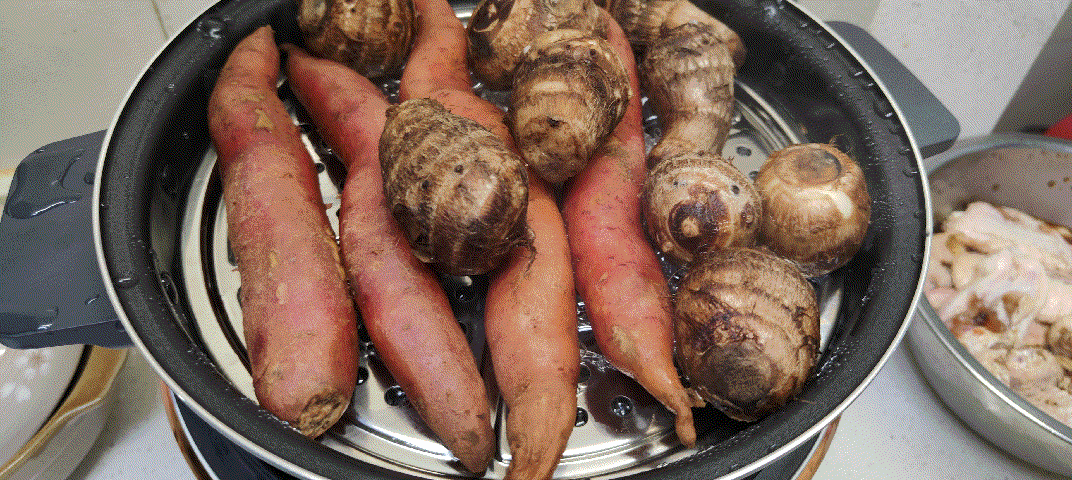 ▲宜盾普空气炸锅搭配煮锅可以完美的完成热饭,蒸馒头,用处还是很多的。我拿来煮我刚从盒马买的芋艿和红薯。