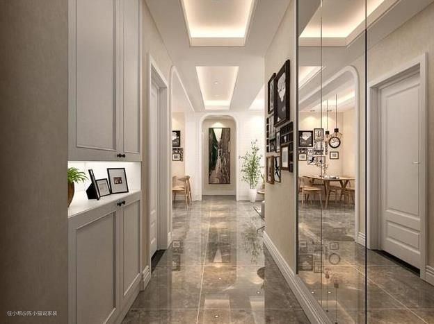 大家都知道玄关是一个过道走廊,所以它在采光方面不是太好,我们就只能借助外部光照来补充了,安装 灯具的时候,光照效果越亮越好,因为这样,我们就可以看清身上的鞋子颜色或者是整体衣服的搭配效 果。如果想要玄关灯光明亮的效果,选择一款大气的水晶灯能让玄关显得很有气场。